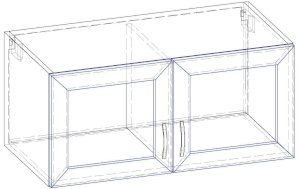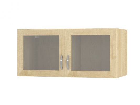 Корпус изготовлен из ЛДСП 16 мм с кромкой ПВХ 0,4 мм. Фасады изготовлены из рамки МДФ (КВАДРО) + прозрачное стекло. Задняя стенка изготовлена из ХДФ 4 мм. Петли - без доводчиков. Ручка скоба 96 мм - хром. Навесы регулируемые - SCARPI. Данное изображение представлено в следующих цветах ЛДСП: корпус и фасады - Клён.