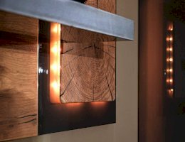 - Подсветка состоит из светодиодной ленты холодного белого света, выключателя и блока питания.