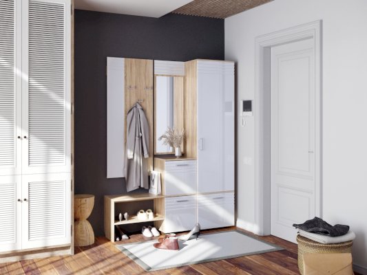 Пенал, который займёт минимум пространства в коридоре, довольно вместителен, поможет рационально организовать хранение верхней одежды, головных уборов и аксессуаров.