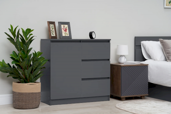 Комод с 3 ящиками и 1 дверью Челси 800 (Миф) – товар доступен к покупке в интернет-магазине noyabrskiy-dommebeli.ru. Цена – 4 828 руб. без учета доставки. Стоимость дополнительных услуг и сроки получения мебели уточняйте у менеджера. Возможен безналичный расчет, оплата по карте на сайте.