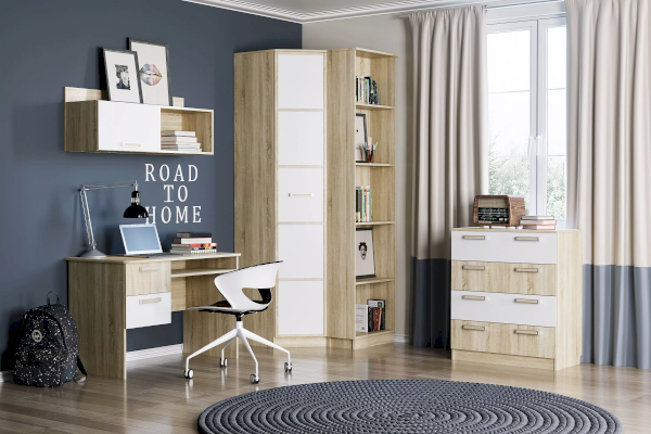 Комод «Фанк» -  идеально подходит для обустройства комнаты подростка. Светлые тона мебели, выдержанный стиль прекрасно смотрятся в любом интерьере. Четыре удобных выдвижных ящика – это огромный объем  для хранения белья, предметов одежды и аксессуаров. Выдвижные ящики оснащены шариковыми направляющими полного выдвижения, равномерно распределяют вес содержимого и обеспечивают плавный бесшумный ход ящика. Комод отлично сочетается с другими моделями коллекции «Фанк».