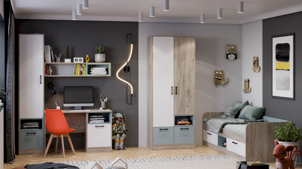 Цвет: Дуб Крафт серый/Белый/Серо-голубой