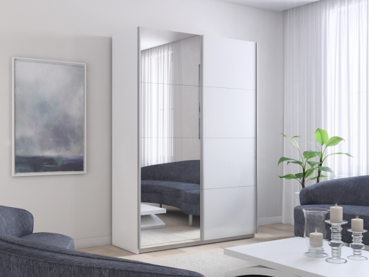 Шкаф-купе 2-х дверный Прайм ДСП/Зеркало 1200х2300х570 мм Белый снег